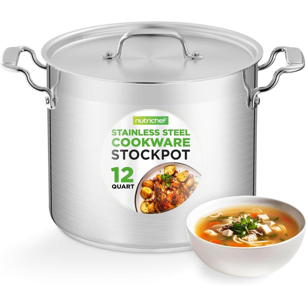 NutriChef Stainless Steel Cookware Stockpot – 14 Quart, Heavy Duty Induction Pot, Soup Pot with Stainless Steel Lid, Gas, Induction, Ceramic, Glass and Halogen Cooktops Compatible – NCSPT14Q(12 Quarts)